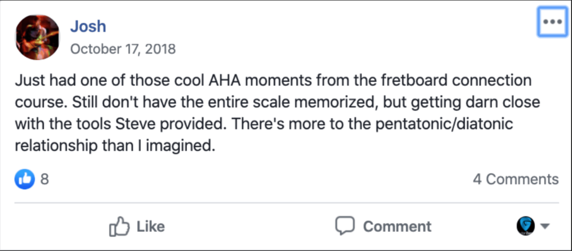So, I vowed that night that would master the pentatonic and diatonic scales in every position across the entire fretboard, in all keys. And I did. It took a long, long time. But I finally “got it.”